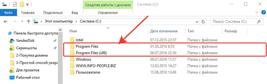 Каждый пользователь ПК, хотя бы раз исследовал свой компьютер, изучал папки и программы, чаще всего с целью освободить место на жестком диске и удалить ненужные файлы. Как правило, в числе самых больших папок фигурируют Program Files (x86) и Program Files у владельцев 64-х разрядных операционных систем. Находится они в корне диска с ОС по адресу: C:\Program Files (x86) и C:\Program Files.