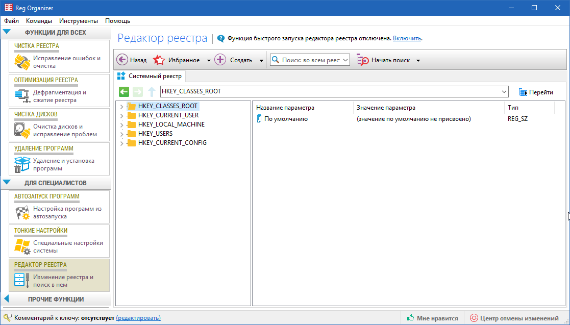 В системном реестре также можно найти множество следов от программ, которые были удалены очень давно. Для их поиска запускаем Reg Organizer и выбираем инструмент «Редактор реестра».