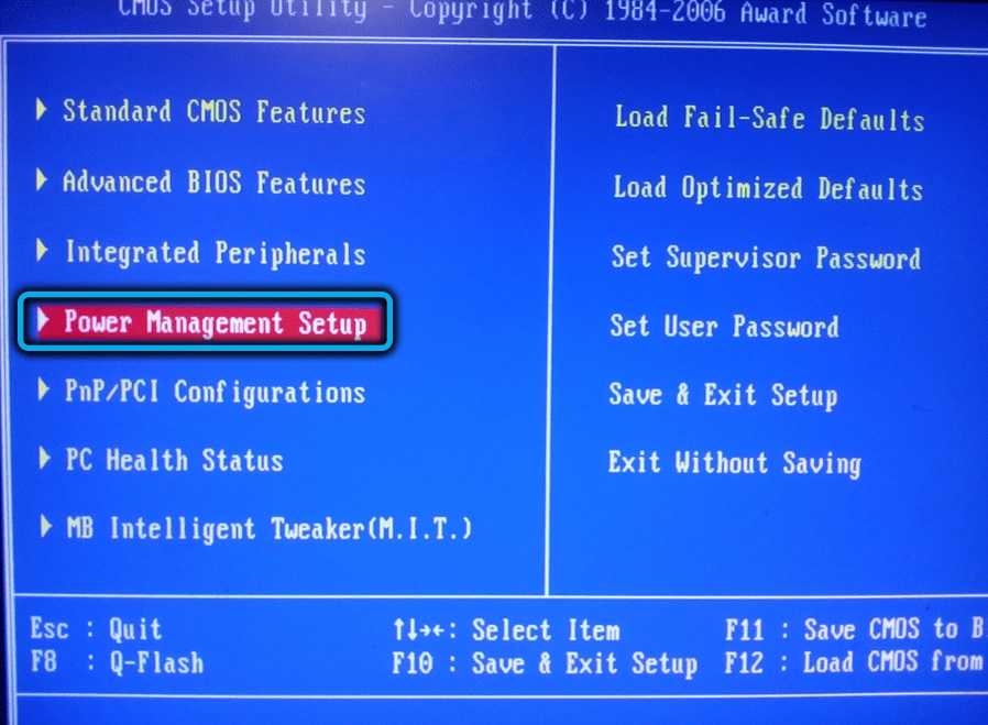 Обычно данную опцию можно найти в разделе BIOS, посвященном управлению питанием ПК. Данный раздел может называться Power, Power Management или как-то в этом духе.