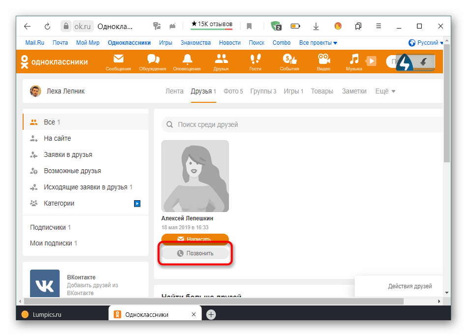 Выберите нужный профиль и нажмите «Позвонить», чтобы инициировать вызов.