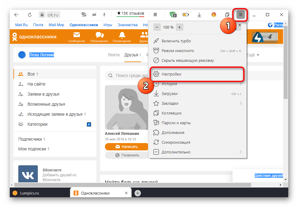 - Откройте главное меню веб-браузера, через которое вы перейдете в раздел «Настройки».