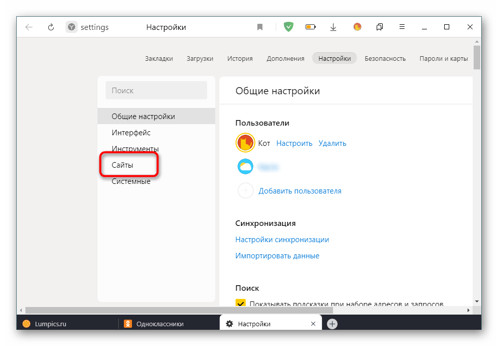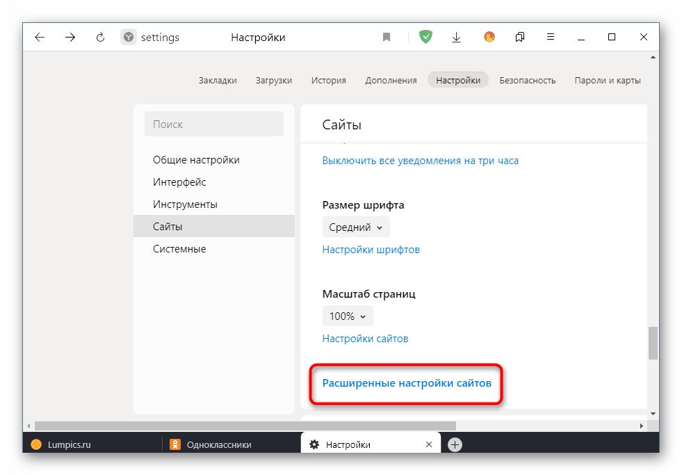 К этому методу следует прислушаться пользователям, которые не предоставили соответствующие разрешения для микрофона при выполнении описанных выше действий. В такой ситуации вам нужно будет зайти в глобальные настройки используемого вами браузера. К счастью, сейчас почти везде они выглядят похожими и даже идентичными названиями пунктов меню, однако уточним, что приведенные ниже скриншоты сделаны в последней версии Яндекс браузера на момент написания этой статьи.