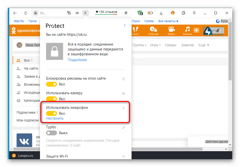Чтобы включить микрофон в Одноклассниках на компьютере или ноутбуке, нужно дать разрешение на использование микрофона в браузере. Если доступ не был предоставлен при первом звонке, необходимо сделать следующее: