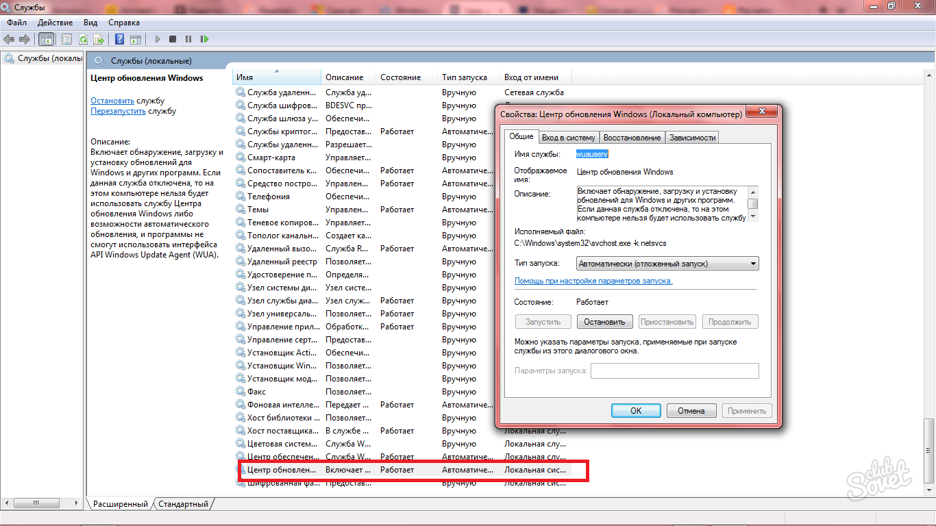 В этом же окне со службами найдите еще одну строку “Центр обновления Windows”. Щелкните дважды по ней.