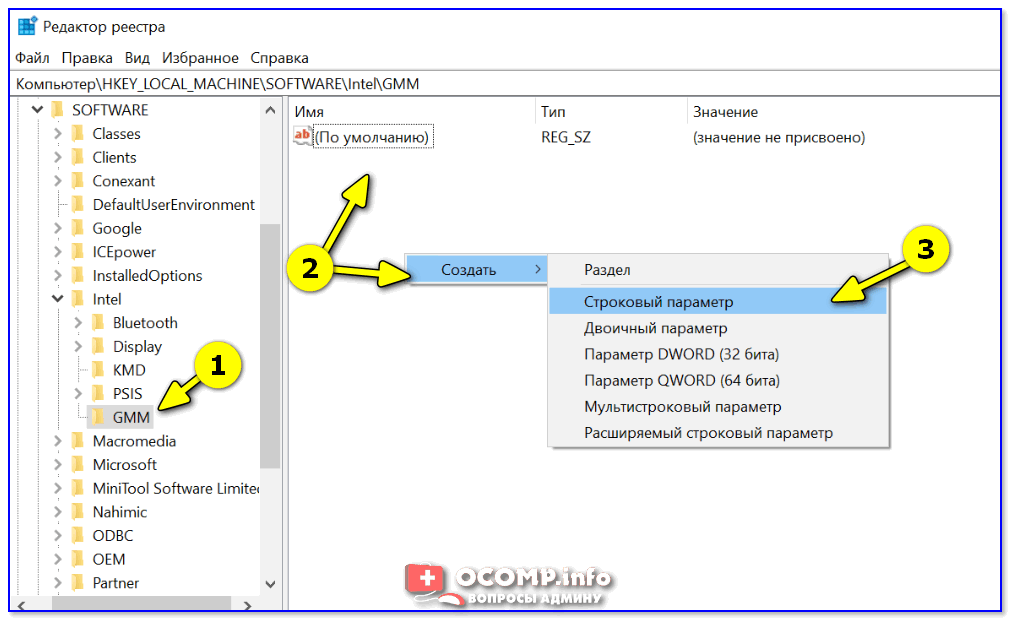 Далее в редакторе нужно создать раздел «GMM» в нижеприведенной ветке: