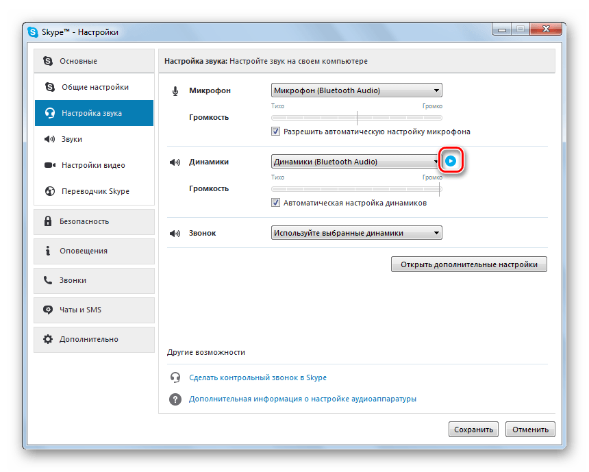Проверить, работает ли микрофон, можно в настройках самой программы («Инструменты» — «Настройки» — «Настройки звука»). Также можно протестировать устройство через контрольный звонок роботу.