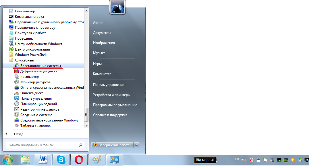 - Открыть меню «Пуск», затем перейти в раздел «Все программы» и последовательно открыть папки с названием «Стандартные», а затем и «Служебные».