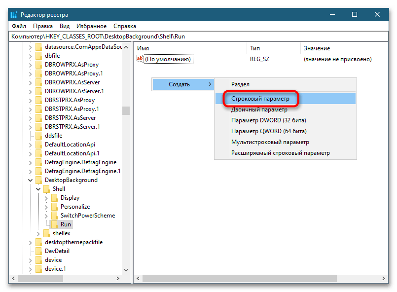 Точно так же вызовите контекстное меню уже в созданном разделе и выберите «Создать» → «Строковый параметр».