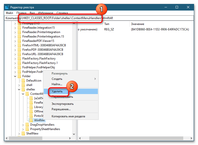 Проверка по нескольким разделам осуществляется потому, что удаляемые пункты появляются в выпадающем меню, которое всплывает при нажатии на Рабочий стол, папки, файлы и так далее. Найдя нужный элемент, необходимо кликнуть правой клавишей мыши и удалить.