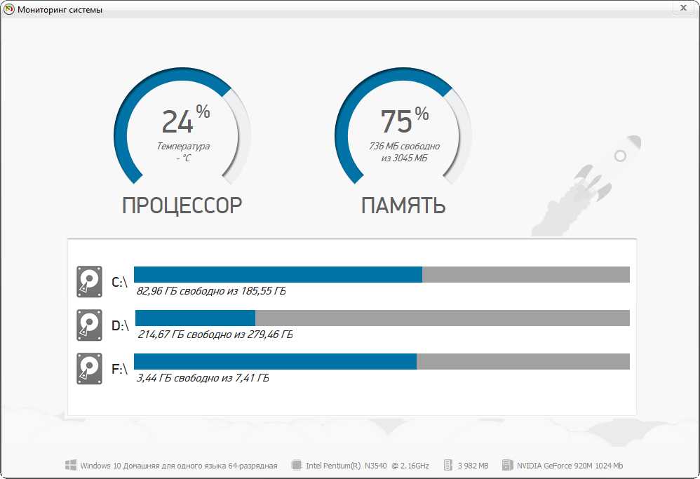 В Ускорителе Компьютера можно посмотреть информацию о состоянии системы