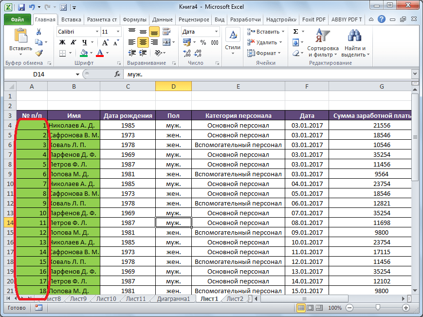 3. Все ячейки в выделенном вами столбце будут пронумерованы.