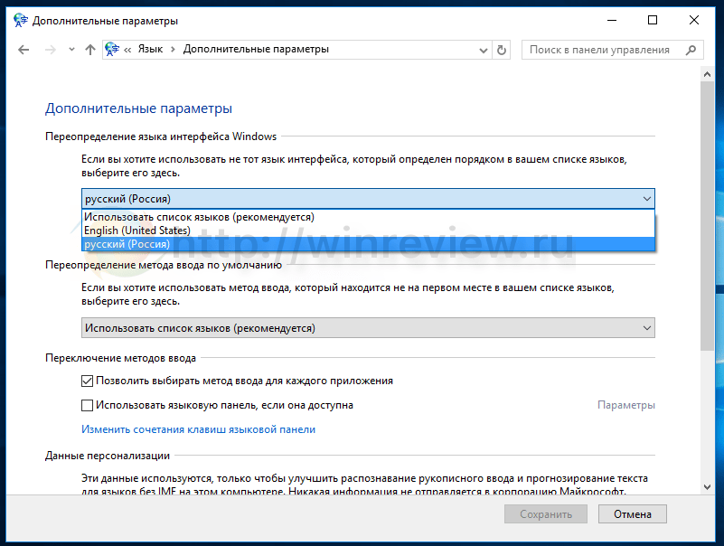 В вышеуказанном разделе найдите Windows display language (отображаемый язык интерфейса). Со списка доступных выберите Русский. Для применения изменений и установки русского языка интерфейса нужно выйти из системы Yes, sign out now (Да, выйти сейчас).