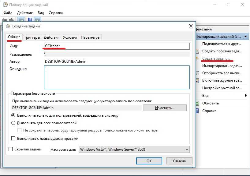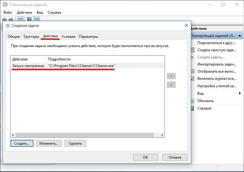 В планировщике задач, справа, есть раздел «Действия» — в нем нужно нажать кнопку «Создать задачу…» (как на скрине ниже ).