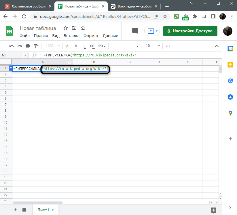 Создание из текста ссылки в Google Таблицах – одна из самых простых задач, выполняющаяся кликом по одной кнопке, которая расположена на уже упомянутой панели с основными инструментами. Поэтому я предлагаю сразу перейти к более сложному процессу – объединению нескольких ссылок. Например, у вас есть один основной домен и несколько разных страниц, на которые нужно организовать переход. При помощи отдельной функции можно сцепить адреса, создав одну строку для перехода на страницу. Далее эту формулу можно растянуть на всю таблицу, потратив минимальное количество времени на создание ссылки на несколько разных страниц с одним основным доменом.