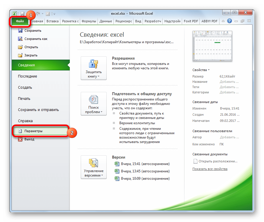 - Откройте вкладку Файл