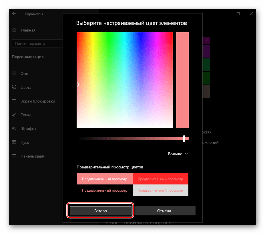 Несмотря на то, что список доступных в настройке цветов достаточно широк, он не охватывает все возможные варианты и вполне вероятно, что кому-то захочется выбрать свой собственный цвет окна (черный, к примеру, которого в списке нет).