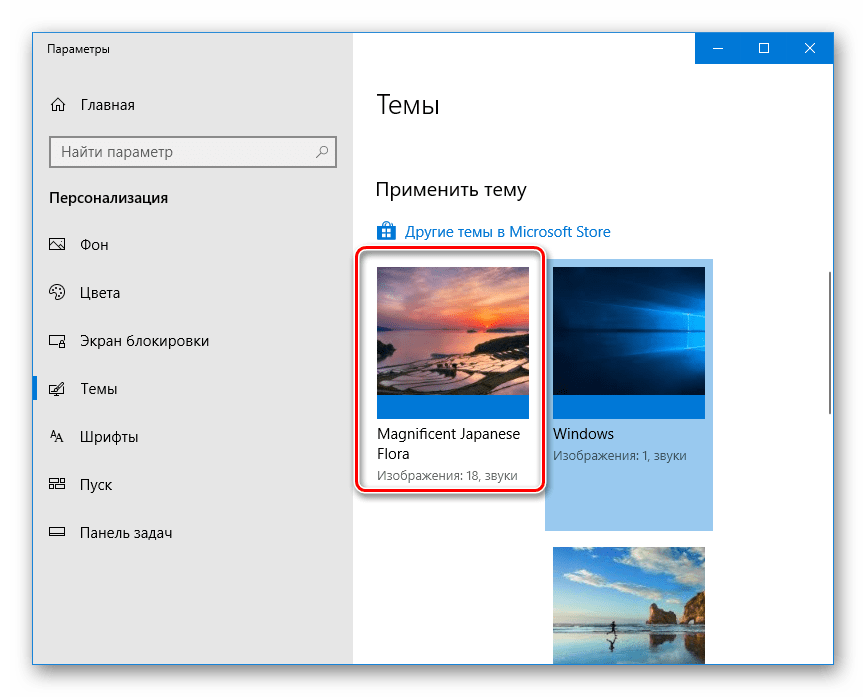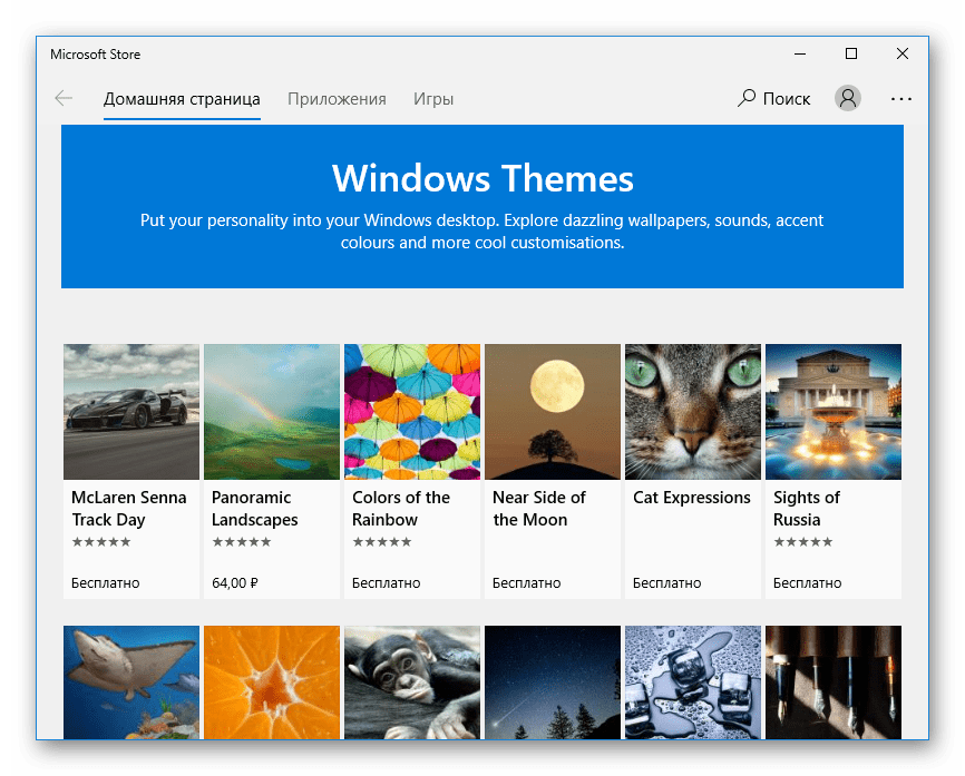 Зачастую пользователей не устраивает цвет не только панели задач, но и других элементов оформления «десятки» (например, меню «Пуск», верхней панели «Проводника», предустановленных и сторонних приложений, значков). Все это можно изменить и/или настроить под свои нужды путем установки темы. Последние обычно содержат не только цветовые решения, но и альтернативные библиотеки звуков, обои, а также различные указатели курсора мыши и анимацию загрузки.