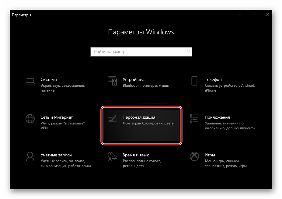 Если же у вас нет желания устанавливать стандартные или сторонние темы оформления, можно пойти более очевидным путем – обратиться к параметрам «Персонализации» Windows 10.