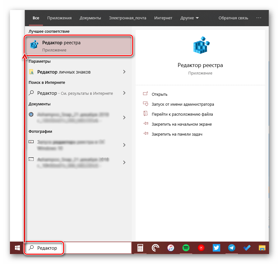 - Любым удобным способом запустите «Редактор реестра», например, воспользовавшись встроенным в операционную систему поиском.