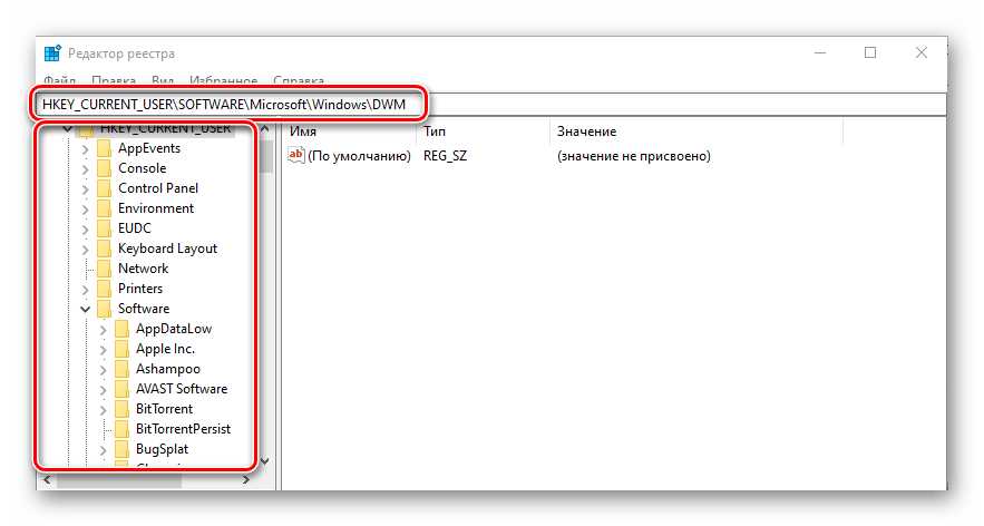 В редакторе реестра перейдите к разделу HKEY_CURRENT_USER SOFTWARE Microsoft Windows DWM