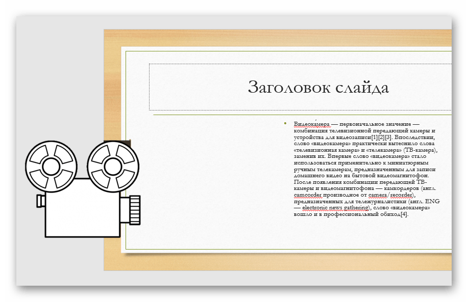 - Размер слайда. Дефолтный формат, например, 4:3; 16:9