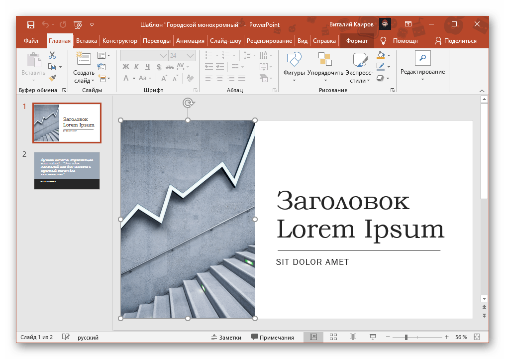 Итак, мы изменили шаблон для презентации. Теперь рассмотрим, как сохранить шаблон с выбранным изображением в качестве фона в PowerPoint.