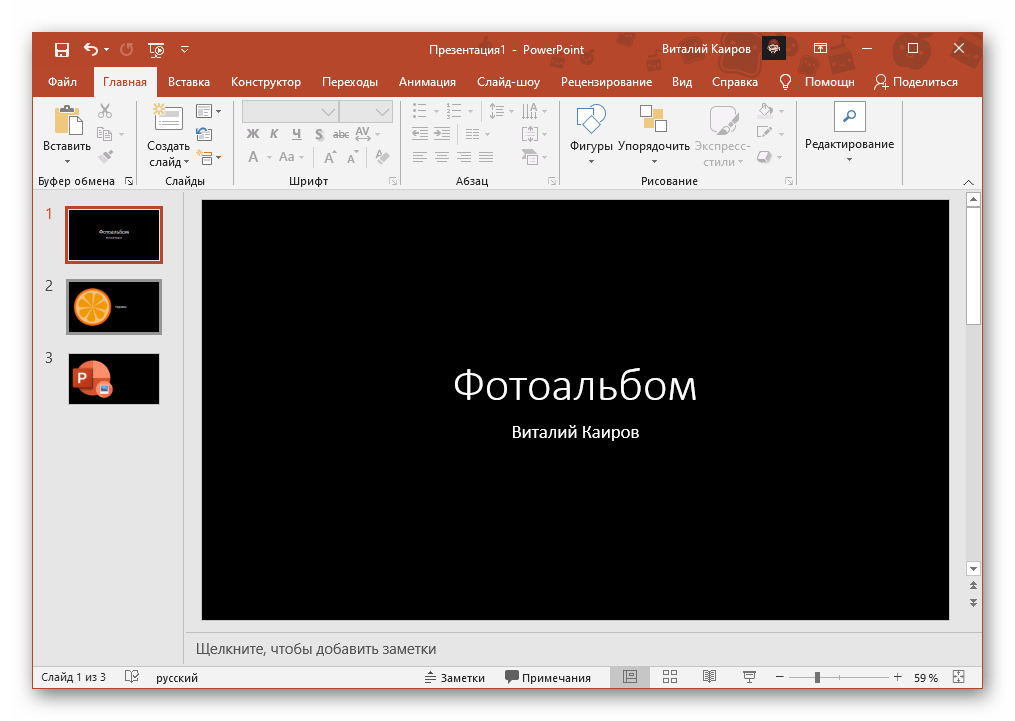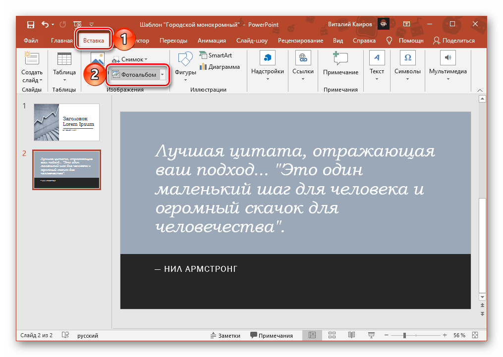 Вставка фотоальбома в презентацию