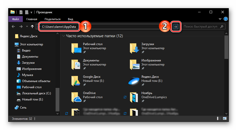 С – это обозначение системного диска, а вместо использованного в нашем примере Username должно быть ваше имя пользователя в системе. Подставьте эти данные в указанный нами путь, скопируйте полученное значение и вставьте его в адресную строку стандартного «Проводника». Для перехода в интересующую нас директорию нажмите на клавиатуре «ENTER» или указывающую вправо стрелку, которая обозначена на изображении ниже.