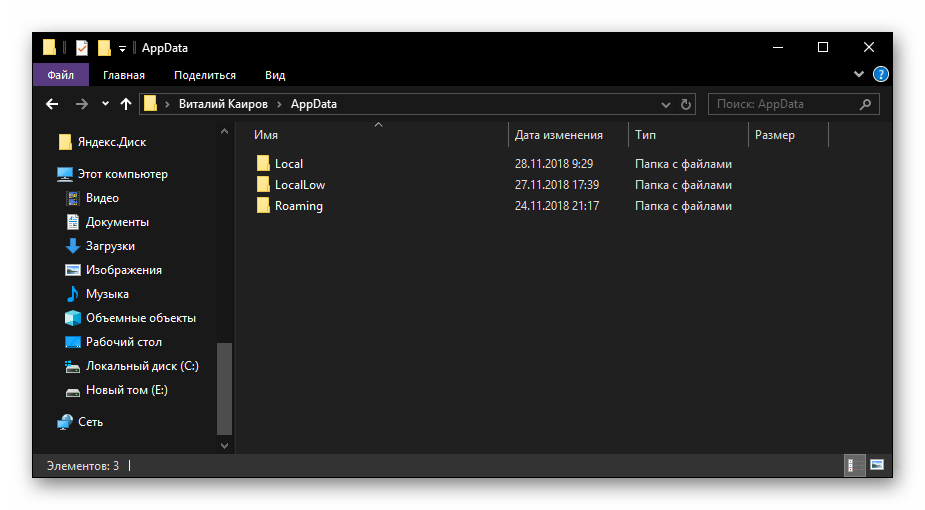 При открытии AppData пользователю будет доступен выбор одной из следующих папок:
