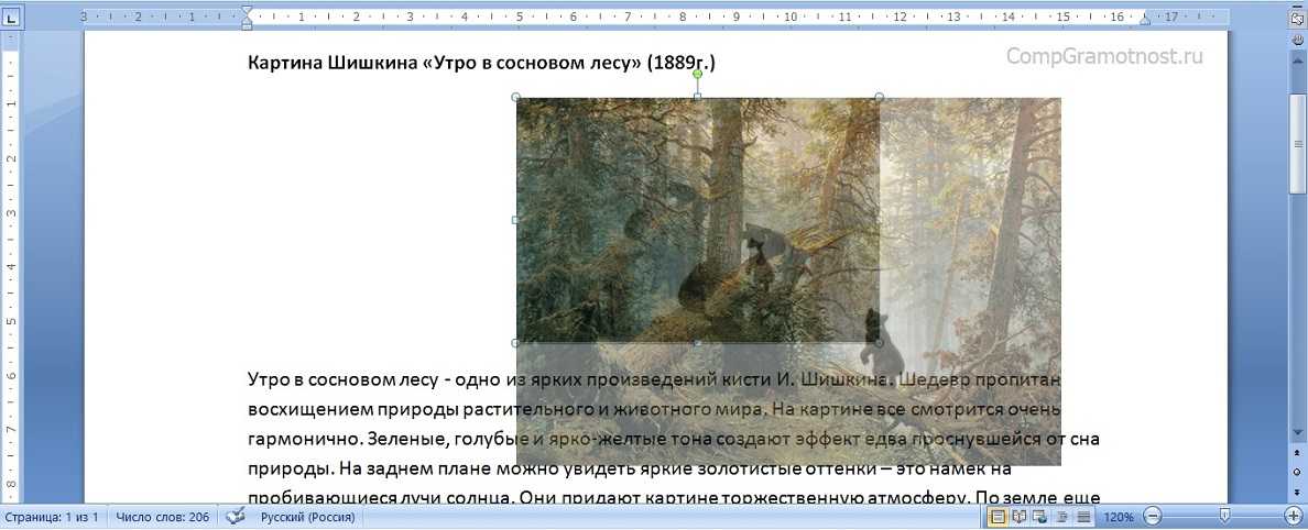 После этого картинку можно свободно перемещать по документу Word и при этом она всегда будет под текстом. Благодаря этому вы можете пододвинуть картинку под нужный вам текст. Таким образом можно вставить текст в картинку в нужном месте документа Word.