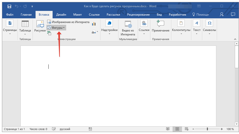 2. Перейдите во вкладку “Вставка” и нажмите кнопку “Фигуры”.