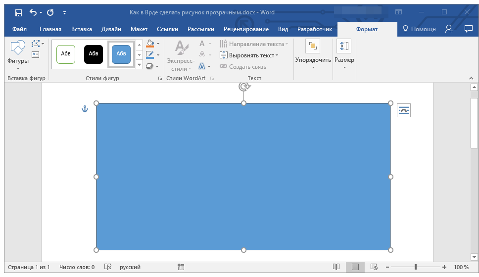 На этом все, теперь вы знаете, как в Word изменить прозрачность рисунка, а также знаете о том, как сделать прозрачными отдельные его фрагменты. Не забывайте о том, что данная программа — это текстовый, а не графический редактор, поэтому не следует выдвигать к нему слишком высоких требований.