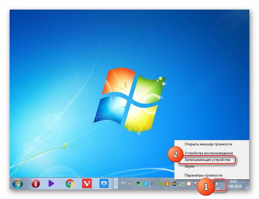 Кликните правой кнопочкой мышки на иконку громкости в трее (область с часами, в правом нижнем углу), нажав на «Записывающие устройства». Появится окно меню «Звук» с подразделом «Запись», в котором, если система определила его, высветится ваш микрофон. Снизу зайдите в «Свойства», перейдите на вкладку «Уровни». Отожмите значок динамика, если он горит красным, и, перемещая ползунок под надписью «Микрофон», настройте чувствительность записывающего устройства.