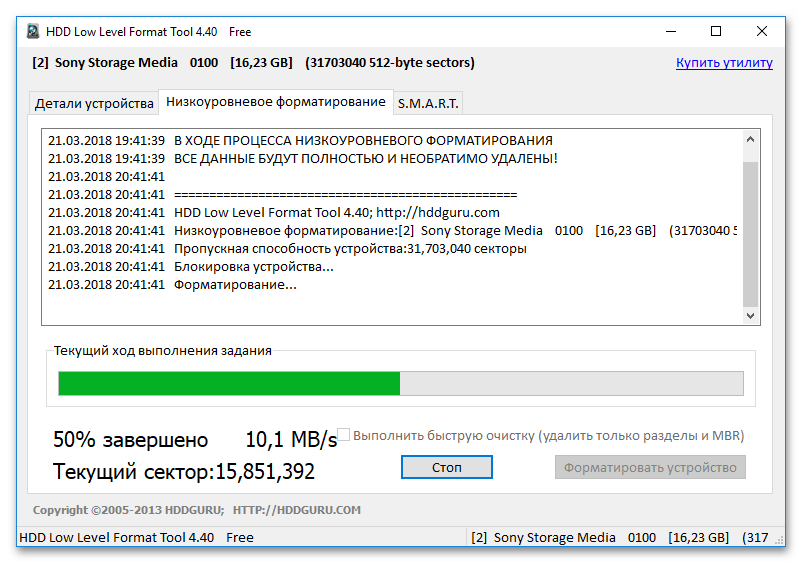 Утилита для форматирования флешки HDD Low Level Format Tool