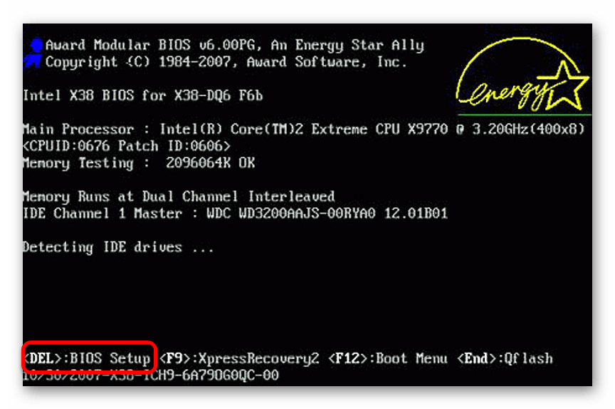 Суть его заключается в том, что при запуске компьютера, в момент появления начального экрана, на нем отображается то самое название клавиши, которая служит проводником в БИОС.