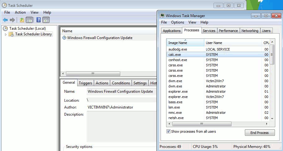 В домене UAC не реагирует на действия удаленного пользователя, если тот является локальным админом. Утилита PsExec Tool от Марка Руссиновича при старте с опцией скрыто запускает указанный экзешник на удаленной системе. Для повышения его привилегий на чужом компьютере может использоваться локально хранимый токен. Готовый эксплоит для этого также есть в Metasploit, а сам метод подробно разбирается здесь.