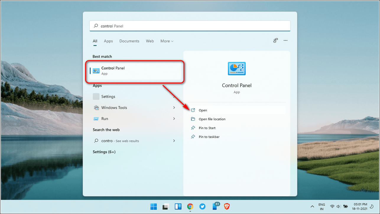 Если по каким-то причинам у вас в трее не отображается нужный значок, войдите в раздел через «Панель управления». Вызвать её можно с помощью комбинации клавиш Win + S. Либо перейдите в неё с «Пуска».