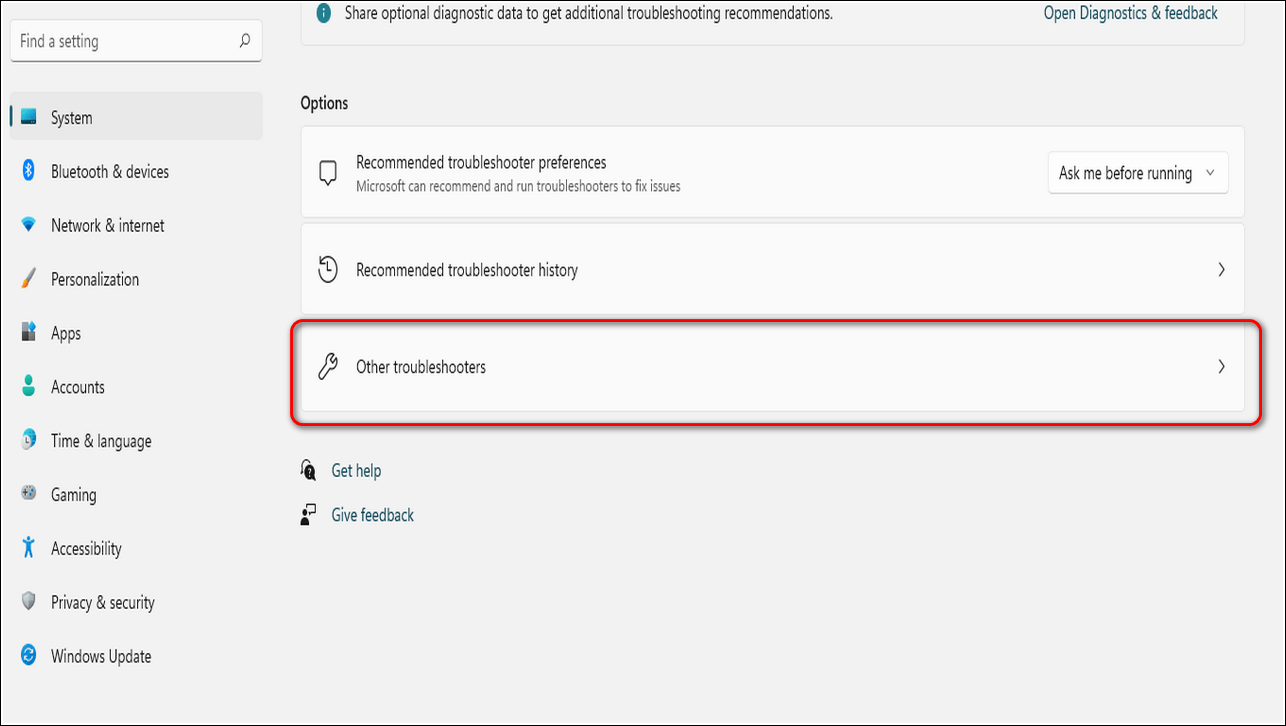 - На левой панели нажмите Система и прокрутите вниз, чтобы найти Устранение неполадок.