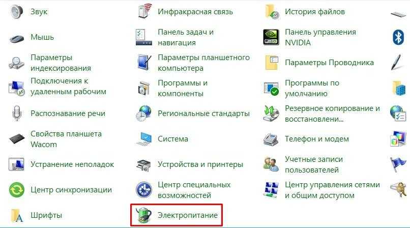 Нажав по панели, мы попадаем на экран, где размещены различные категории параметров для настройки. Выберем пункт «Электропитание».