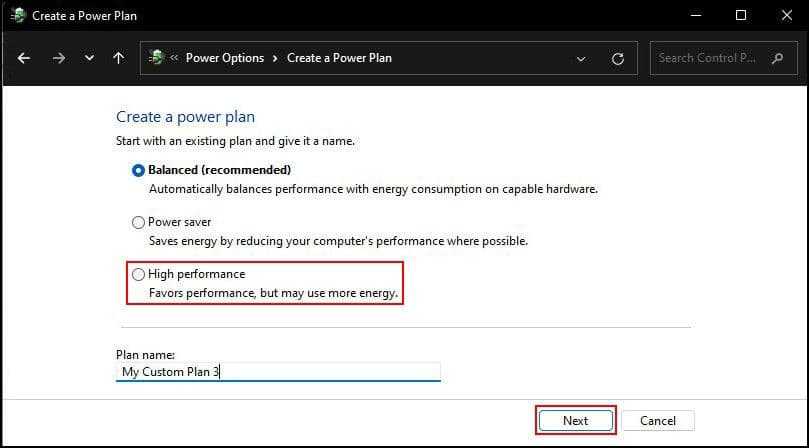 Несколько пользователей подтвердили, что проблема была вызвана их текущим планом питания, и смогли исправить ее, переключившись на пользовательский план. Если вышеуказанные шаги не работают для вас, мы рекомендуем вам изменить свой план питания и посмотреть, имеет ли это какое-либо значение. Вот как это сделать: