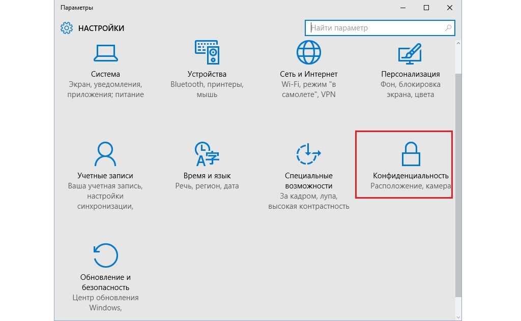 №9. Окно «Конфиденциальность» параметров Windows 10