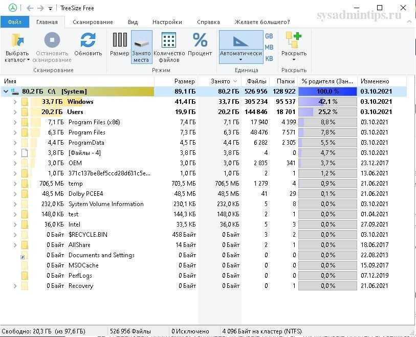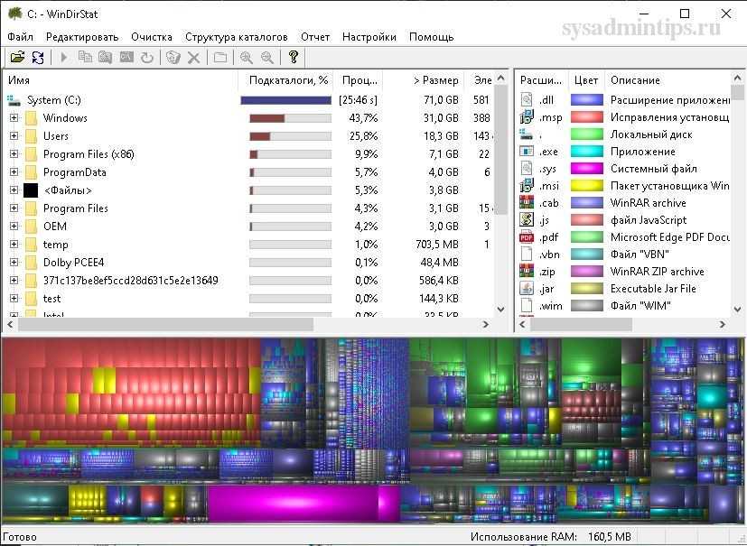Если с этим есть трудности, можно воспользоваться бесплатными анализаторами места на дисках, например, WinDirStat или TreeSize Free.
