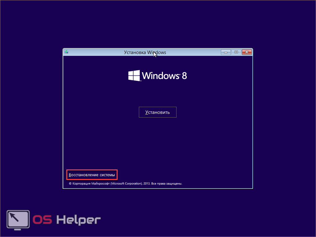 Обратите внимание, что внизу есть ссылка «Восстановление системы». Необходимо кликнуть на неё.