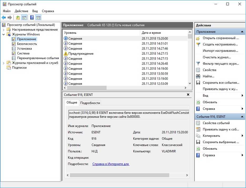 Все данные разделены на группы. К примеру, в журнале приложений можно просмотреть сообщения, исходящие от установленного софта. А знаете, как посмотреть системные происшествия ОС? Они отображаются в журнале Windows, что вполне логично.
