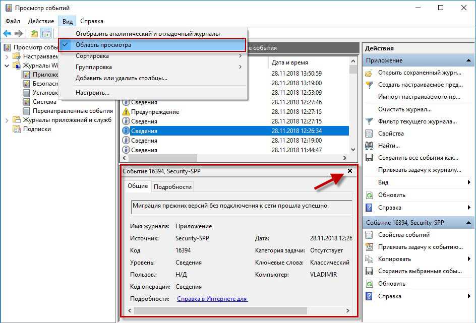 - Открыть журнал событий, как мы это делали ранее в начале статьи.