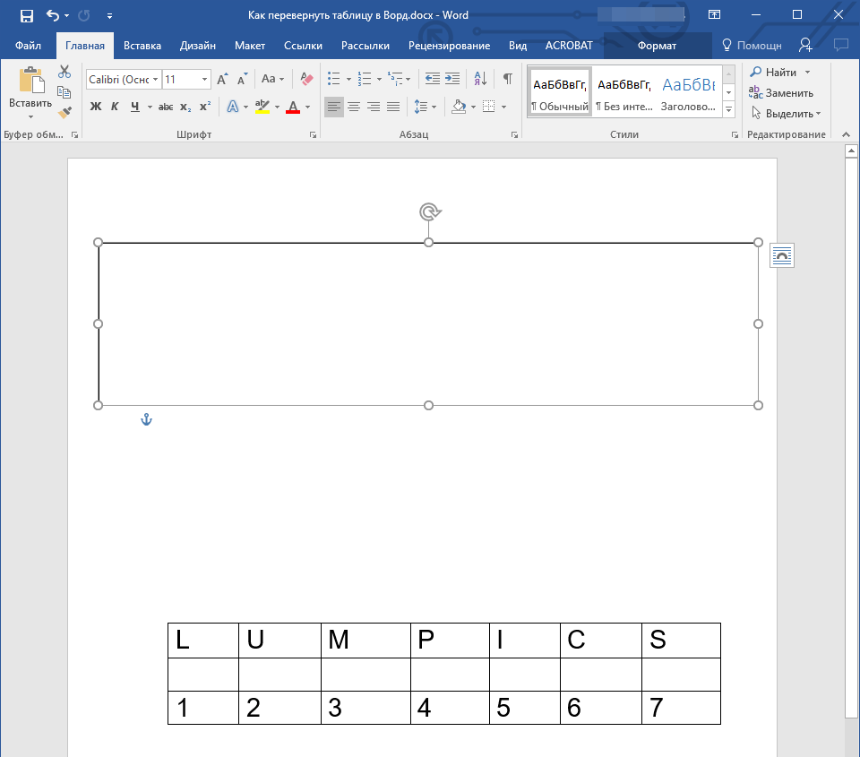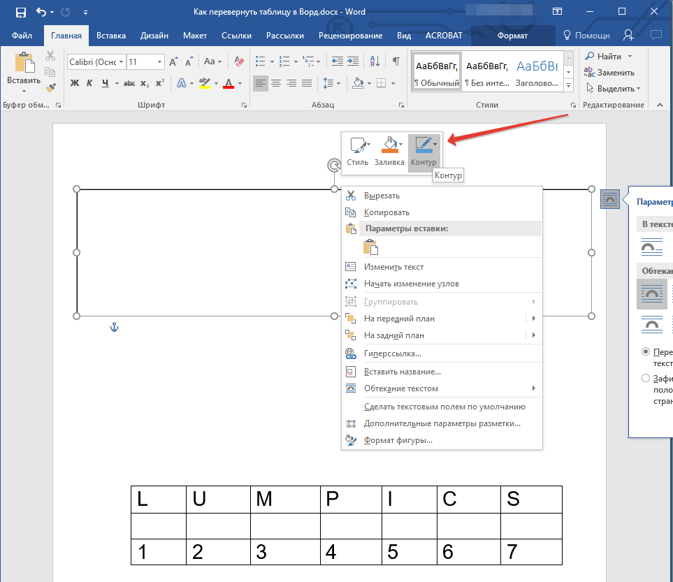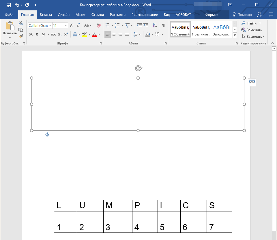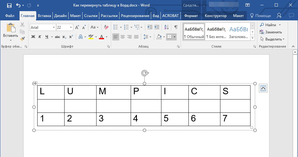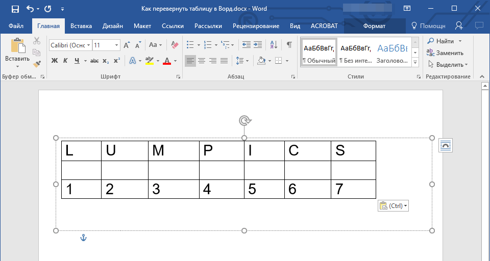 Как перевернуть таблицу в Word