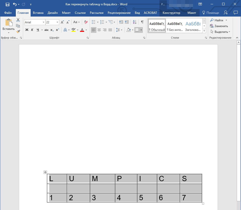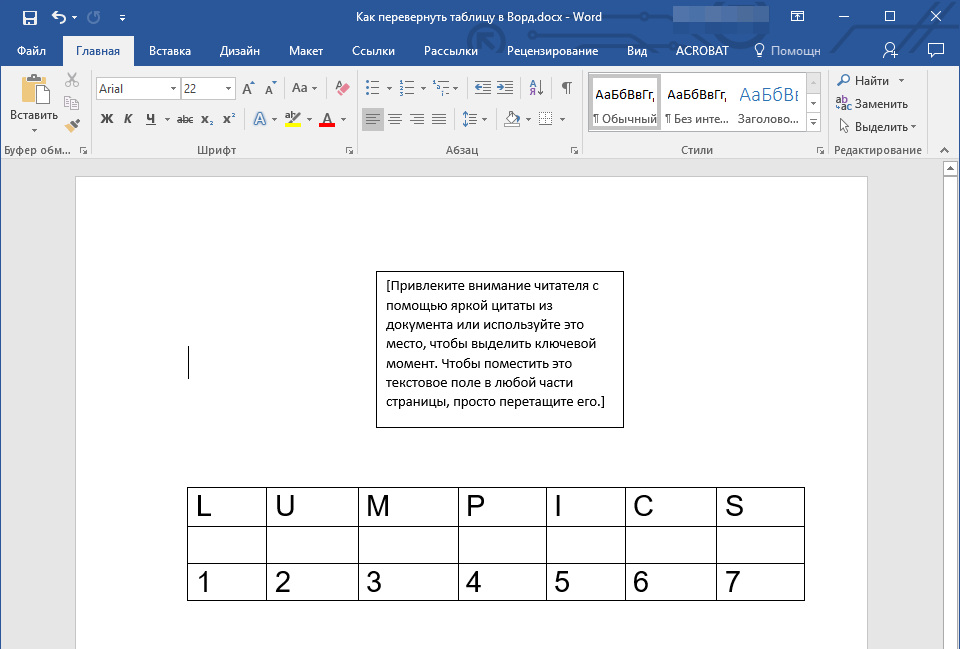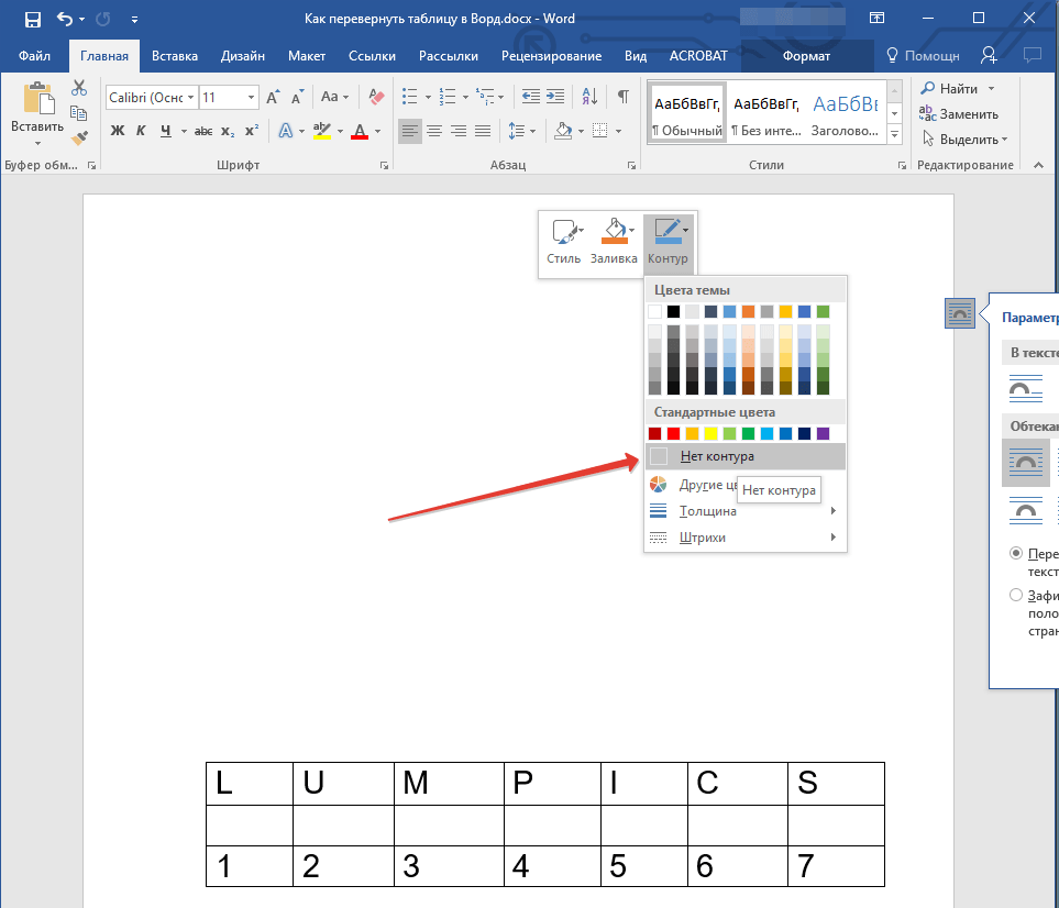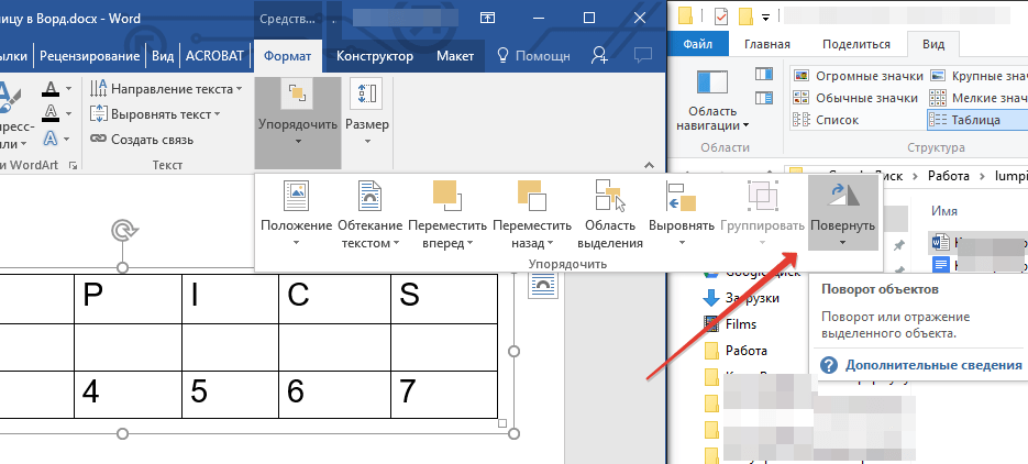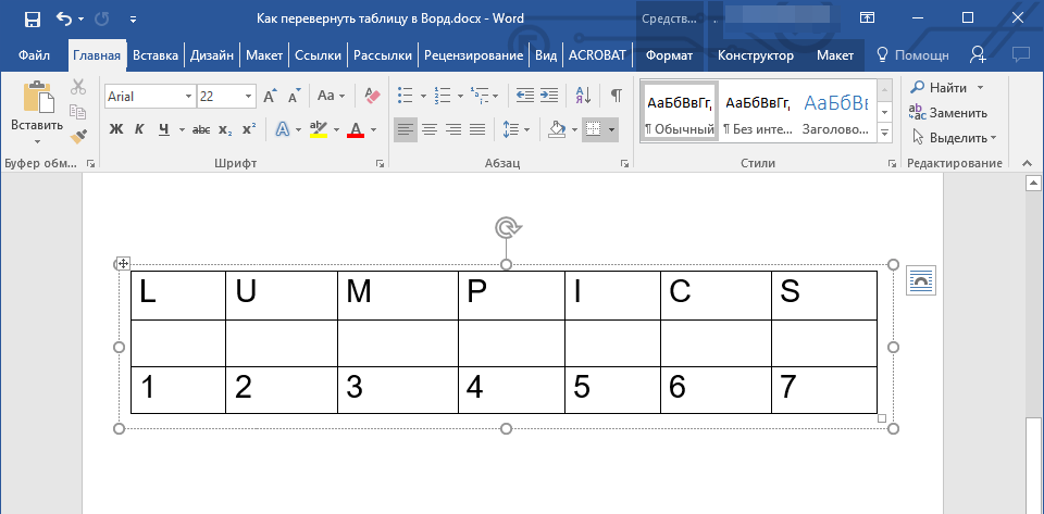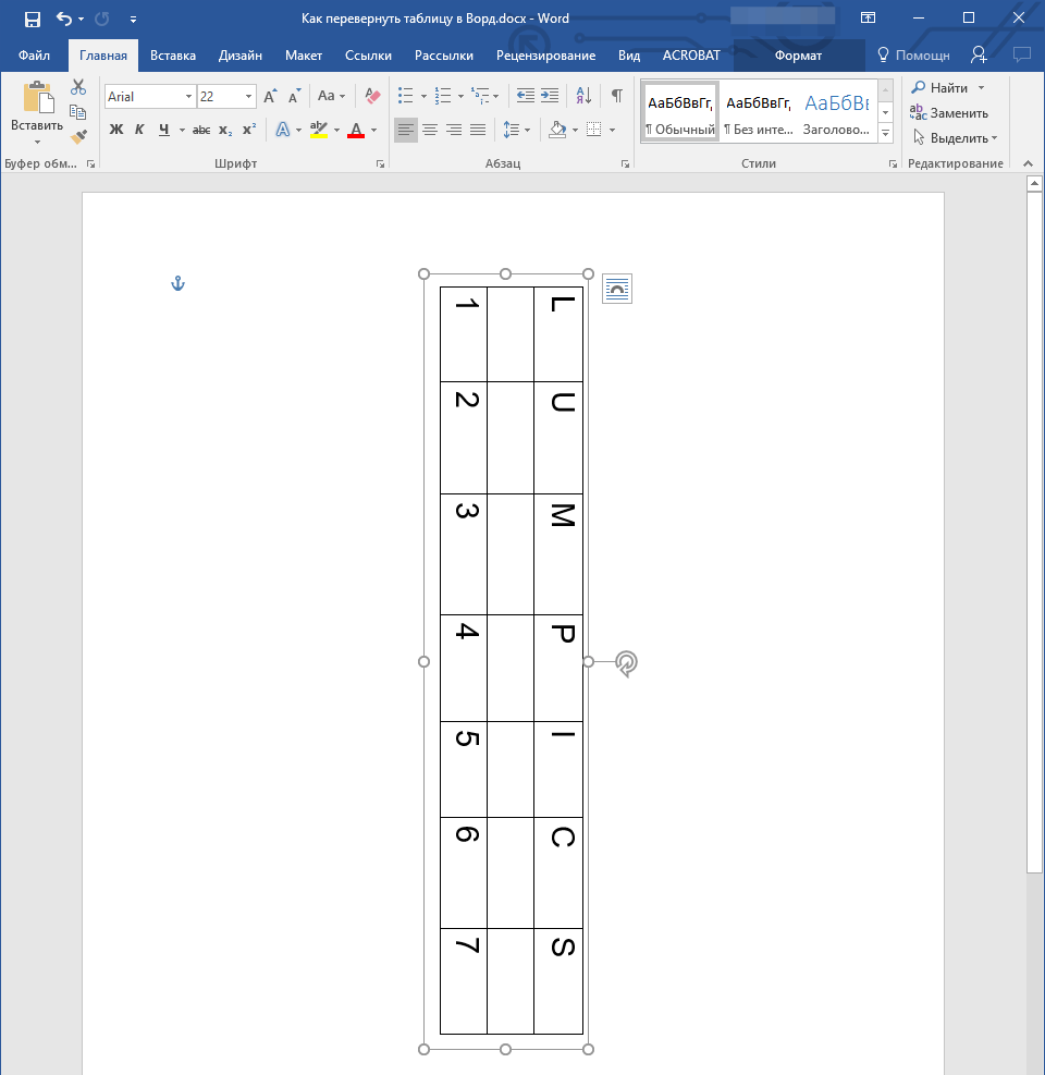 Как перевернуть таблицу в Word