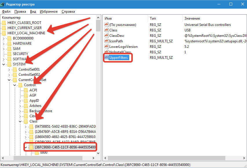 Далее ищем ключ с названием «UpperFilters» и удаляем его, либо меняем название. Теперь система не будет использовать фильтр USB.