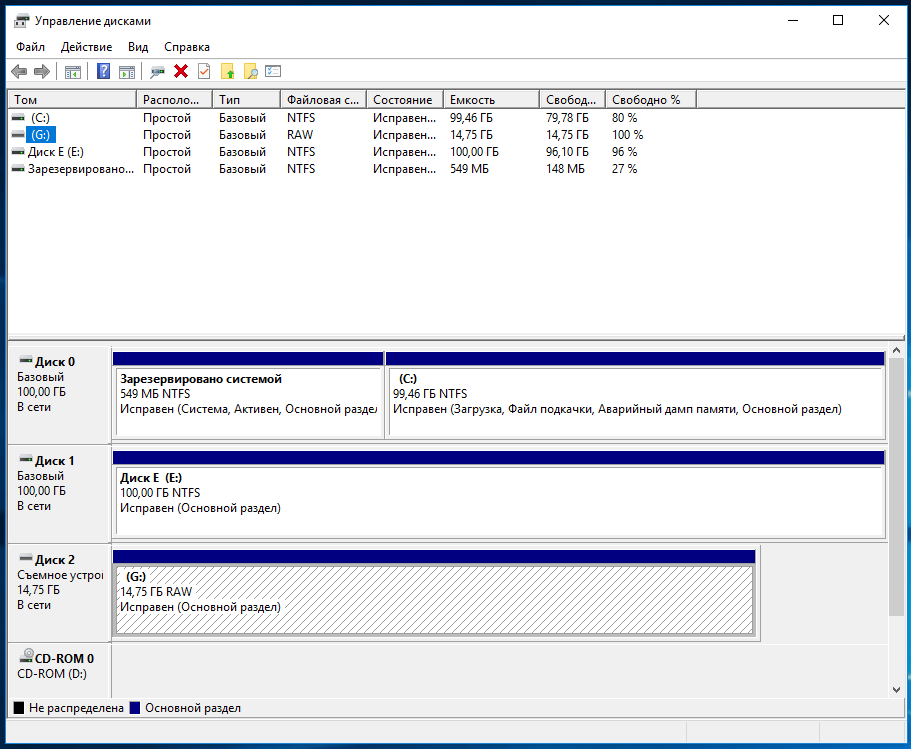 Нажмите Win+R, введите diskmgmt.msc и узнайте номер диска, который требуется подключить к виртуальной машине. В моем примере — это диск 2.