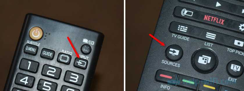 На пульте дистанционного управления телевизора должна быть отдельная кнопка «SOURCES» или «INPUT».